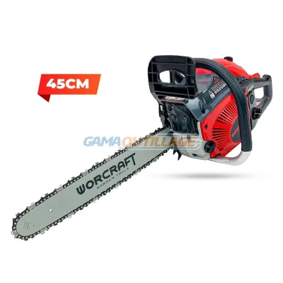 Référence : GCS46-18 Description : GAMAOUTILLAGE vous propose une TRONCONNEUSE A CHAINE ESSENCE 45CM WORCRAFT, La tronçonneuse à essence WORCRFT GCS46-18 est parfaite pour couper sans ef