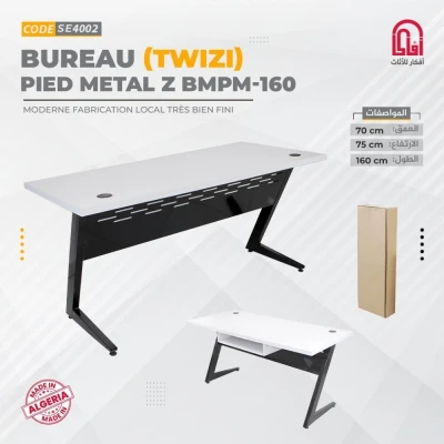 Bureau Gamer TWIZI longueur : 160 cm Hauteur : 75 cm profondeur : 70 cm * Couleurs Disponible * Plateau : Blanc / Piètement/Pieds : Noir * Matière * Plateau : Bois MDF / Piètement/Pieds :
