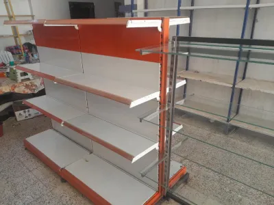 Etagere plusieurs type حاملات سلع مختلفة الاحجام و الانواع 2 Table métal (2.2m*1m) 4 étager en verre 1 etagere metal blanc - etagere simple par pièce
