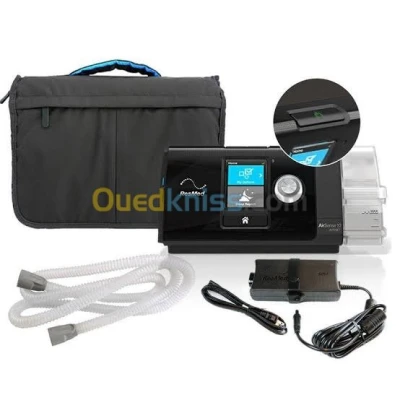 Appareil de traitement de l'apnée du sommeil CPAP, marque BMC RESmart G2. Un masque + sacoche de transport sont inclus dans l'appareil.