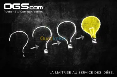 OGScom Publicité & Communication vous propose : ✅Création : Logotype, maquette, charte graphique. ✅Impression : Grand format, autocollant, bâche, one way, tissu. ✅Impressio