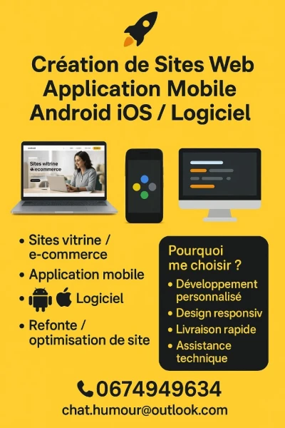 Besoin d’un site web professionnel ou d’une application performante ? Je suis développeur web et applications avec 5 ans d'expérience. Je propose des solutions sur mesure adaptées à