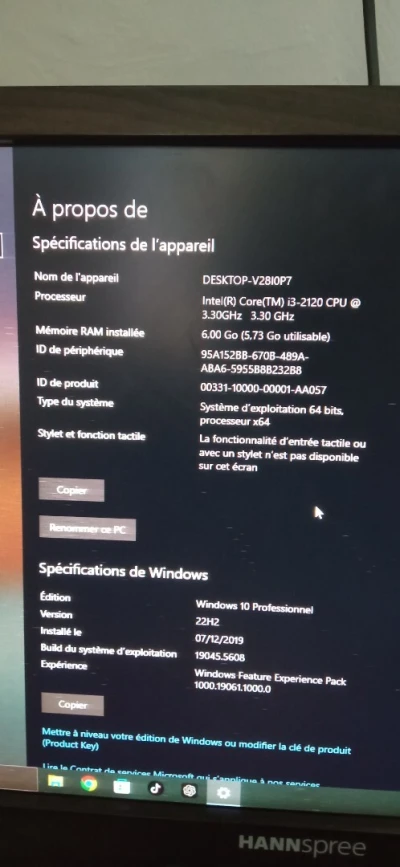 Unité : RAM 6 ddr 3 Disk dur 280 gb Intel HD graphique intégré Carte mère h61 Windows 10 professionnel اونيتي نقية تمشي بدون مشاكل مليحة للتصفح وال
