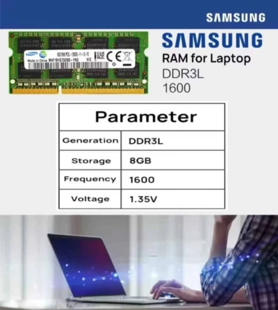 RAM DDR3L SAMSUNG Capacité : 8G Fréquence : 16000 MHz Voltage: 1.35V Produit neuf sous emballage
