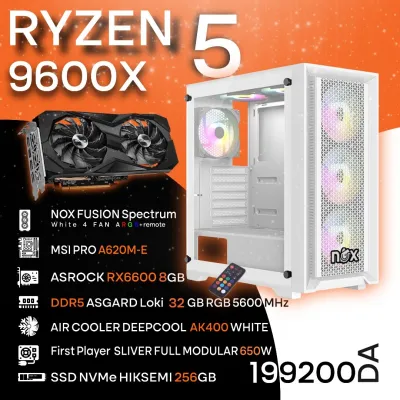 AMD Ryzen 5 9600X 6-core, 12-Thread Up to 5.4 GHz Unlocked Desktop Processor – TRAY – CPU AIR COOLER DEEPCOOL AK400 WHITE MSI PRO A620M-E DDR5 Supports AMD Ryzen™ 8000 / 7000 Series