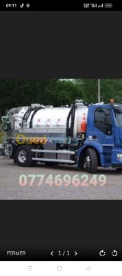Camion vidange debouchage de canalisation et curage vidange de fosse septiques et cave nettoyage canivou reugare zarbot 0771807148