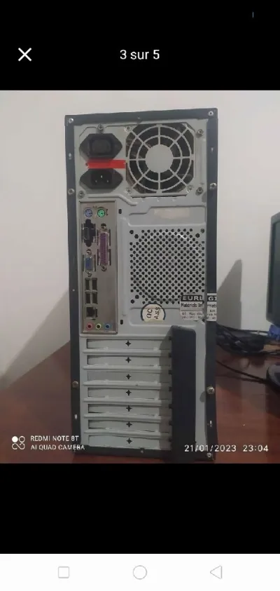 CPU:i3 3240 Ram:8ram MB:Esonic H61HFL. STORAGE:sdd 256g PSU:CANAR SWITCHING MODEL:ATX300W Écran :19 (FHD) Pc complet avec écran 19(FHD) jeux jusqu'à (pes2017-Gta4....) ميقراش cd