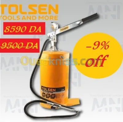 POMPE A GRAISSE 16KG produit originale Tolsen. * التوصيل: 48 ولاية (كل ولاية لها سعر التوصيل الخاص بها). * السعر: - قبل: 9,500 دج.