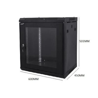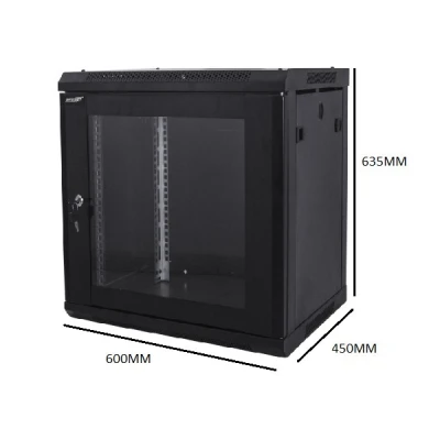 Armoire de brassage Murale 12U 600*450*635mm / 600*600*635mm Porte Avant Vitrée deux portes laterales. Dimensions: L: 600 mm x P: 450 mm x H: 635 mm / 600*600*635mm, offrant un espace opti