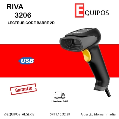 Lecteur code barre douchette sans fil 2D Lecture rapide sur papier et ecran ▪️Lecture : 1D 2D QR papier, plastic, ecran, ▪️Distance : 20mm-200mm ▪️Refrech : 30 fps ▪️Batteri