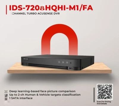 8-ch 1080p 1U H.265 AcuSense DVR 8 channels and 1 HDD 1U AcuSense DVR False alarm reduction through human and vehicle target classification based on deep learning Efficient H.265 pro+ compre