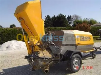 Location pompe à béton marque turbosol très selancieuse projection de béton tuyau 40 m ,Pied droit métallique , échafaudage en acier galvanisé marque bativert 2,5 sur 14 m de hauteur