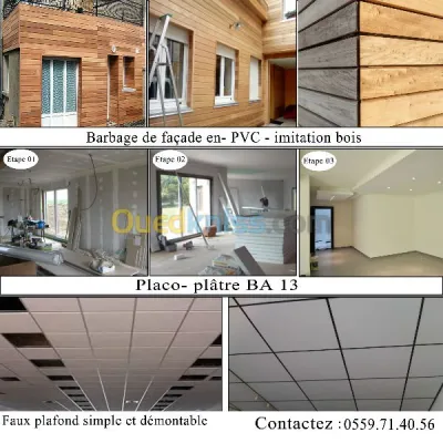 -BARDAGE DE FACADE EN -PVC-IMITATION BOI -PEINTURE BATEMENT -PLACO PLATRE -FAUX PLAFOND SINPLE -FAUX PLAFOND DIMONTABLE