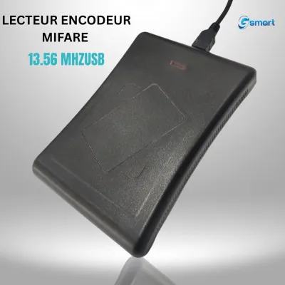 LECTEUR ENCODEUR MIFARE 13.56 MHZ USB Le lecteur encodeur MIFARE 13.56 MHZ USB permet la lecture, l’écriture et l’effacement rapide et précis des cartes intelligentes. Idéal pour les