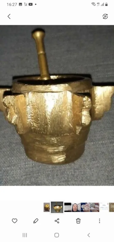 Vend cette objet ancien en cuivre ou autre prix à débattre mortier avec pillon très joli contacter moi par mail merci