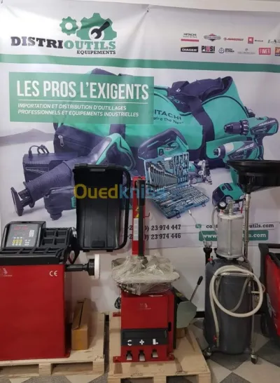 Appareil géométrie 3D -Pont élévateur 4 colonnes -Pont élévateur 02 colonnes -Compresseur 500l la marque BALMA -Equilibreuse roue léger -Demonte pneu semi automatique -Presse hydraul
