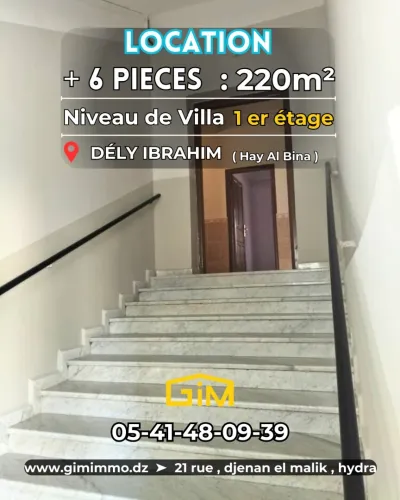 Location Niveau de villa pour bureaux – Dely Ibrahim (Hay Al Bina )📍 À louer un niveau de villa de 220 m² situé au 1er étage avec entrée indépendante, dans un quartier résiden