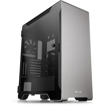 Le Thermaltake A500 TG est un boîtier moyen tour en aluminium brossé, avec des panneaux en verre trempé pour un design moderne et épuré. Compatible avec les cartes mères ATX, Micro-ATX