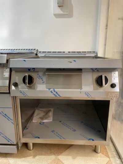 Plaque chauffante chromée à gaz 1m20 à gaz avec soubassement réfrigérée marque Silko d’origine Italienne 🇮🇹🇮🇹🇮🇹 Notre show room a bordj el kiffan alger 📍Gps : E