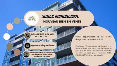 Annonce : 0339 🏠-Le type de transaction : #vente 🏠-Le type de bien : #APPARTEMENT 🏠-La localisation du bien ; #HLM ; ORAN 🏠-Agence SABIL IMMO propose #APPARTEMENT pour vente