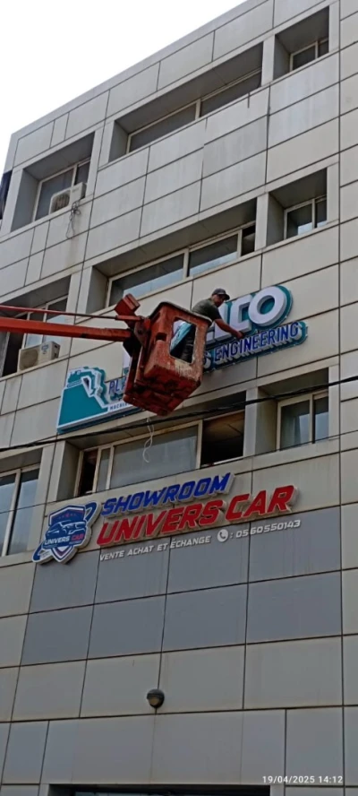 Salam alikom nakhadmo tous les modèles des panneaux réalisation des façades en alucoband panneaux afficheur habillage des vitrines et impression petit et grand format lettres lumineux