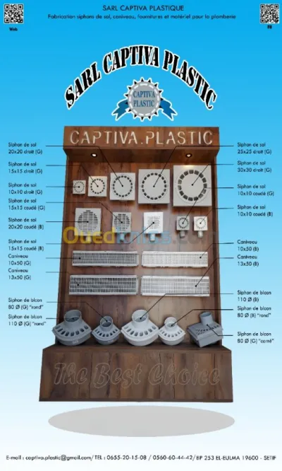 Captiva plastic est une société de fabrication et commercialisation : siphon de sol, caniveau, joint, et des articles de plomberie et ces accessoires en plastique basé a El Eulma – Sét
