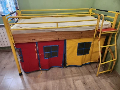 Lit mezzanine à étage Ikea -pour 1 personne- de dimensions L 208 cm x l 101 cm x H 208 cm pour matelas 90 x 190 Prix 10000da Vendu SANS MATELAS