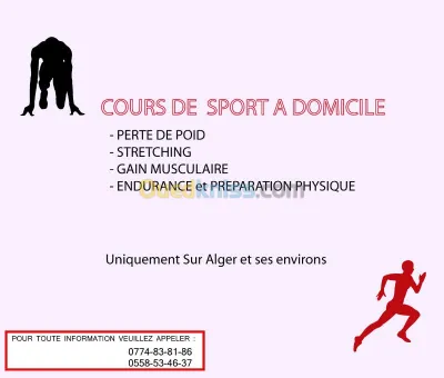 je vous propose des cours de sport à domicile ( fitness / cardio / endurance ) a but de perte de poid ou autre objectif personnel (gain musculaire , stretching , remise en forme , préparat