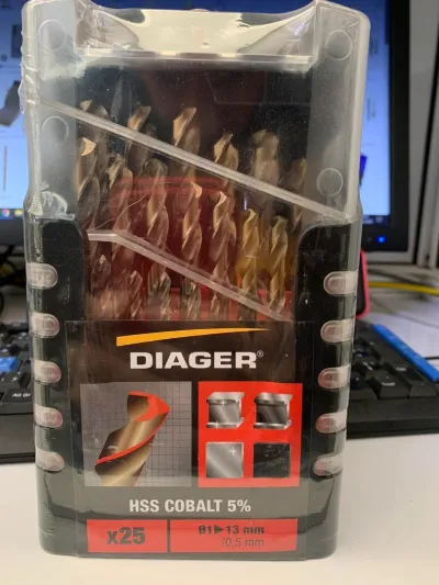 forets à maçonnerie : 4 mm, 5 mm, 6 mm, 8 mm, 10 mm 15 forets hélicoïdaux HSS : 1 mm, 1,5 mm, 2 mm, 2,5 mm, 3 mm, 3,5 mm, 4 mm, 4,5 mm, 5 mm, 5,5 mm,