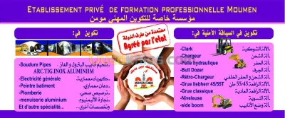 ETABLISMENT DE FORMATION ET D’ENDEINEMENT PROFESIONNELLE (MOUMEN FORMATION) % عملي100 Fondateur :HADJERI SMAIL Les Formation de l'école : - مدة التكوين شهري�