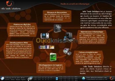 Info Tools Solutions est un bureau d’études et de conseils en informatique situé à Akbou dans la wilaya de Bejaia et aussi sur Alger au niveau du Cyber Parc de Sidi Abdellah, qui inte