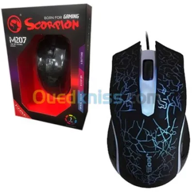 Souris Gamer MARVO Scorpion RGB – G943 DPI: 1000-16010000. Boutons: 6. Rétroéclairage: RVB. Taux d’interrogation: jusqu’à 1000 Hz. Interface: USB 2.0. Longueur de câble: 1,