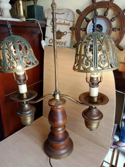 Liquidation de stock Grande lampe double en bois bronze
