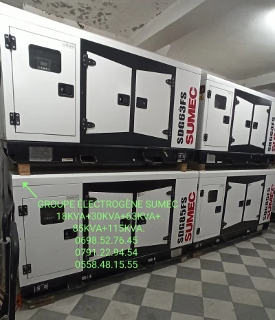 GROUPE ELECTROGENE SUMEC DISPONIBLE 1.1KVA JUSQU'AU115KVA MOTEUR 4 CYLINDRE 5 CYLINDRE 6 CYLINDRE INSONORISÉE AVEC ARMOIRE DÉMARRAGE AUTOMATIQUE MOTEUR DIESEL