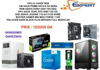 Carte graphique: MSI GeForce RTX 3050 G2422C Intel core i3 12100 12eme gen, 3.3Ghz Alder lake 10nm technology Ecran MSI 23.6" Incruve. 16g ram ddr4 1197Mhz Carte mère: Biostar group H