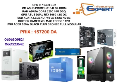 Unite Gamer Intel I5 12400 /CM MSI H610-E /DDR4 16G 3200Mhz / SSD 256 GB/Carte Graphique GEFORCE RTX 3060 8G/ PSU 550W / Case NOX ASPIR FLOW full White plus 6Pcs Fan 12cm ARGB + Controller 1