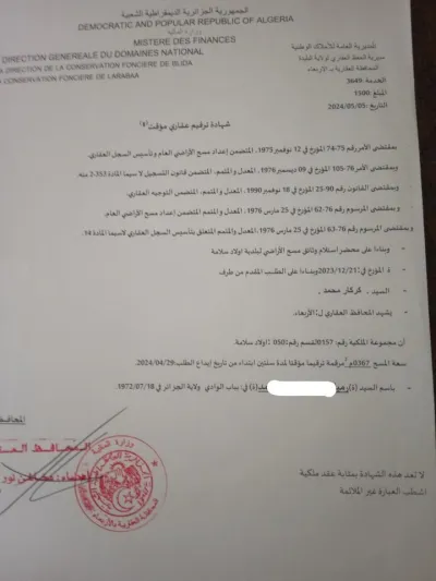 قطعة ارض في اولاد سلامة الاربعاء ولاية البليدة لا تبعد عن الطريق الوطني 800متر.... بمساحة 367 متر مربع بسعر �
