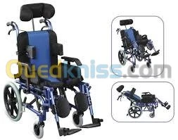 Accoudoir détachable et réglable en hauteur. Dossier inclinable. Siège ajustable et inclinable par un vérin à pression. Deux Ceintures pour maintenir le corps. Ceinture pour mainten