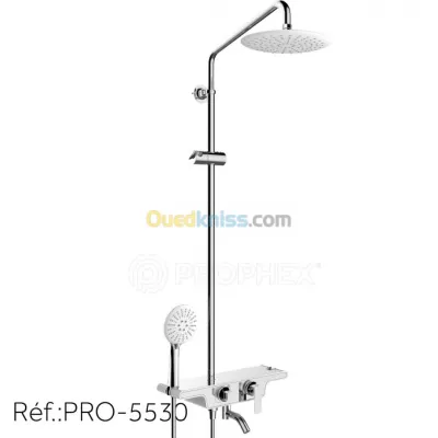 TPC vous assure la disponibilité de colonne de douche PROPHEX. * Caractéristiques de produit : - Pommeau élégant orientable avec des picots anticalcaires. - Bras rotatif 360° en