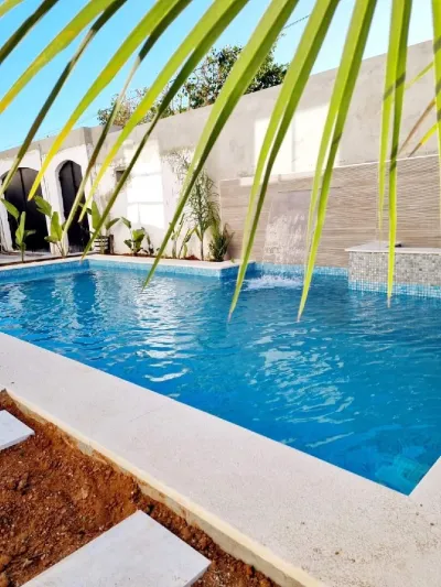 Mosaique Piscine Skimmer Debordement mirroir Filtre a sable Jacuzzi Villa Construction Alger Blida Tizi ouzou Architechte