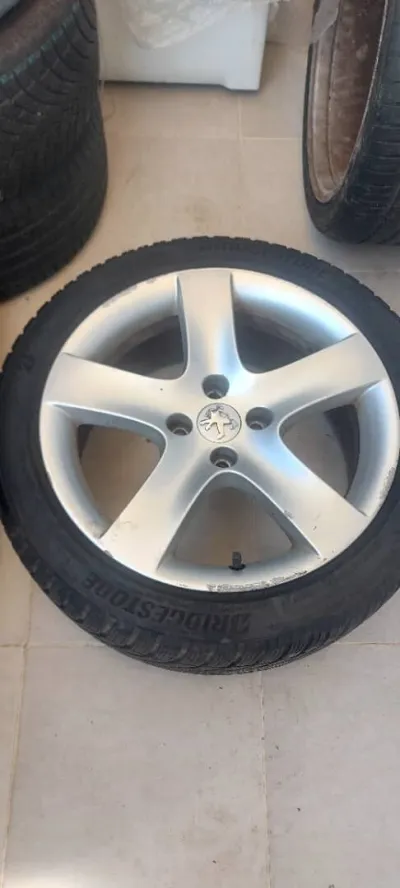 4 jantes aluminium marque Peugeot 17 pouces avec 2 pneu bre Bridgestone et 2 pneu honkook