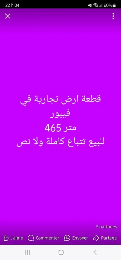 Je met en vente un terrain commercial faubourgs souk ahras m3a trik principal win hwanet ta3 faionce