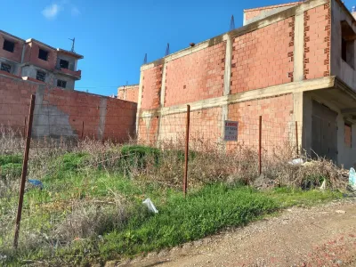 vente terrain a kara mostfa kima masjid el nour fih 160 m bati 100m . fih les poteaux et centure.
