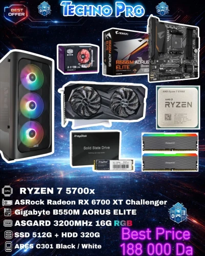 Config PC Gamer ✅RYZEN 7 5700X ✅ASRock Radeon RX 6700 XT Challenger ✅Gigabyte B550M AORUS ELITE ✅ASGARD 3200MHz 16G RGB ✅SSD 512G + HDD 320G ✅ARES C301 Black / White ⚙️Op