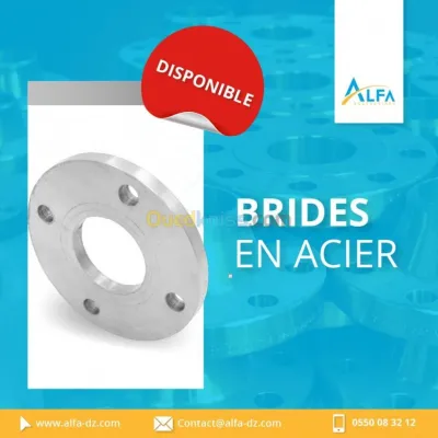 Al wassim Hydro vous propose la gamme des brides: Bride plate en acier ,Bride pleine en acier, Bride filetée en acier, Bride à collertte en acier Diamètre Nominal: DN 40 -800 Pression :