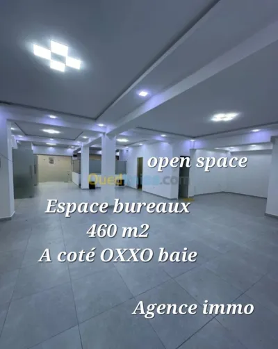 AGENCE IMMO MET EN LOCATION UN ESPACES DE BUREAUX SITUÉ A SAID HAMDINE A CÔTÉ DE LA DIRECTION GÉNÉRALE, IMMEUBLE D OXXO BAIES. 1_ SUPERFICIE 460 M2. R + 1 2_ POSSIBILITÉ DE BOX PARKI