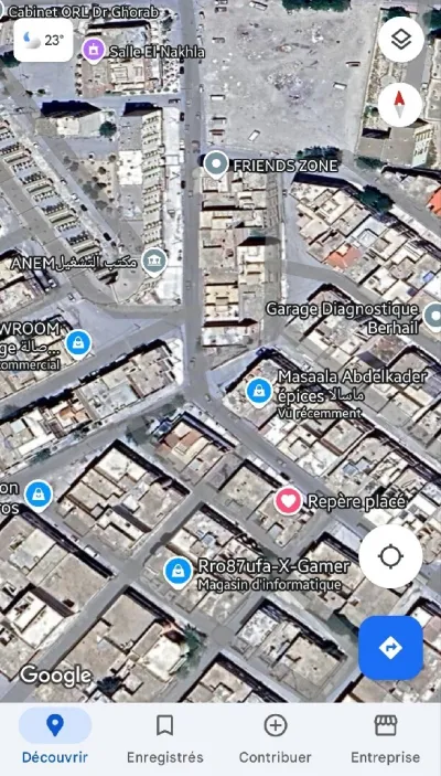 المحل كانت فيه صيدالية ، على شكل حرف L كبير واسع و ضاوي ربي يبارك جا مع طريق تحت الحي العسكري و مقابل عمارا