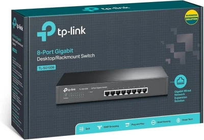 SWITCH 8-PORT GIGABIT TL-SG1008 *8 ports Gigabit Ethernet (10/100/1000 Mbps) : Permet de connecter jusqu’à 8 appareils à une vitesse allant jusqu’à 1 Gbps. *Plug and Play : Aucun log