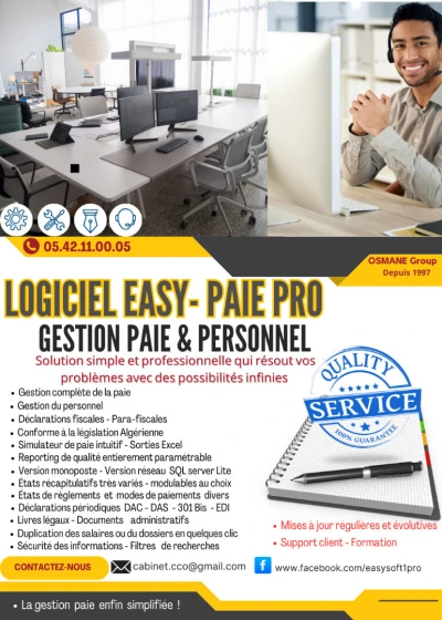 Logiciel de Paie & Personnel - 2025 - EASY-PAIE PRO : Logiciel - Professionnel - simple et convivial . Possibilité d'importer vos archives depuis votre votre ancien logiciel [gain de temps