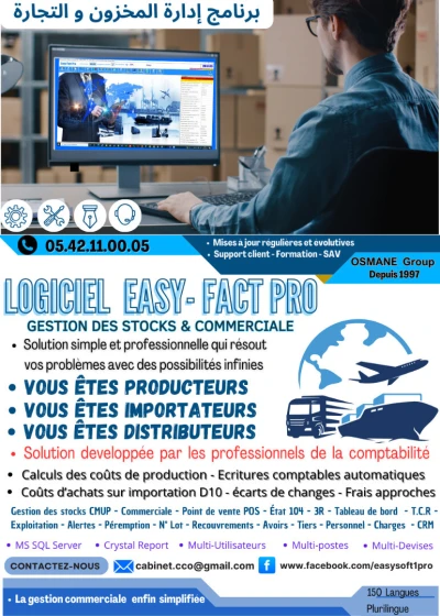 LOGICIEL EASY-FACT PRO - CALCULS COÛTS DE PRODUCTION COMMANDE CLIENT – P.R.J مؤسسات المطاعم، التموين الغذائي، الفنادق، المقاصف، والخدما